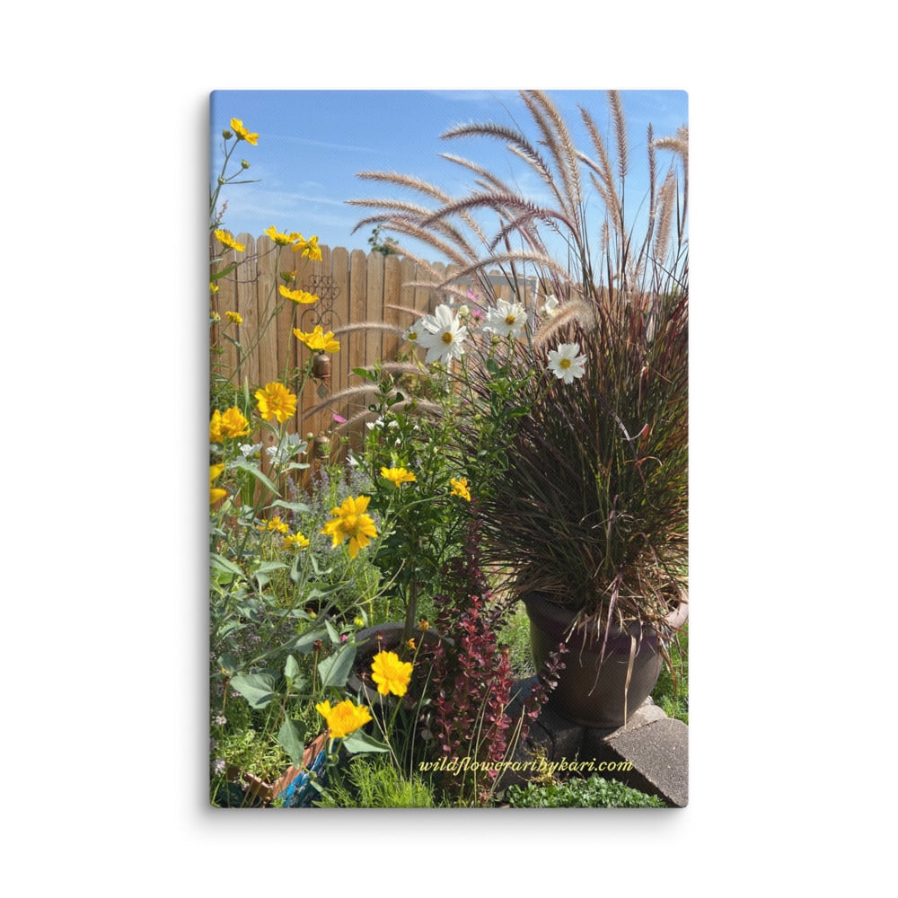 Decorate a space in your home or office that needs a major touch of color and tranquility and get lost in the beauty of my happy summertime garden. This picture was taken the summer of 2024 and is captured forever as a 12” X 18” canvas print.