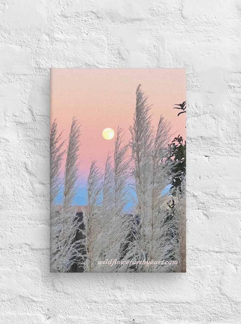 Full Moon and Pampas Grass - 8” X 12” Canvas Print