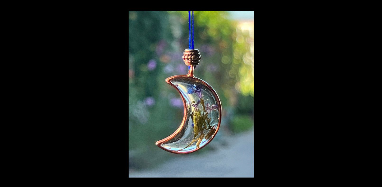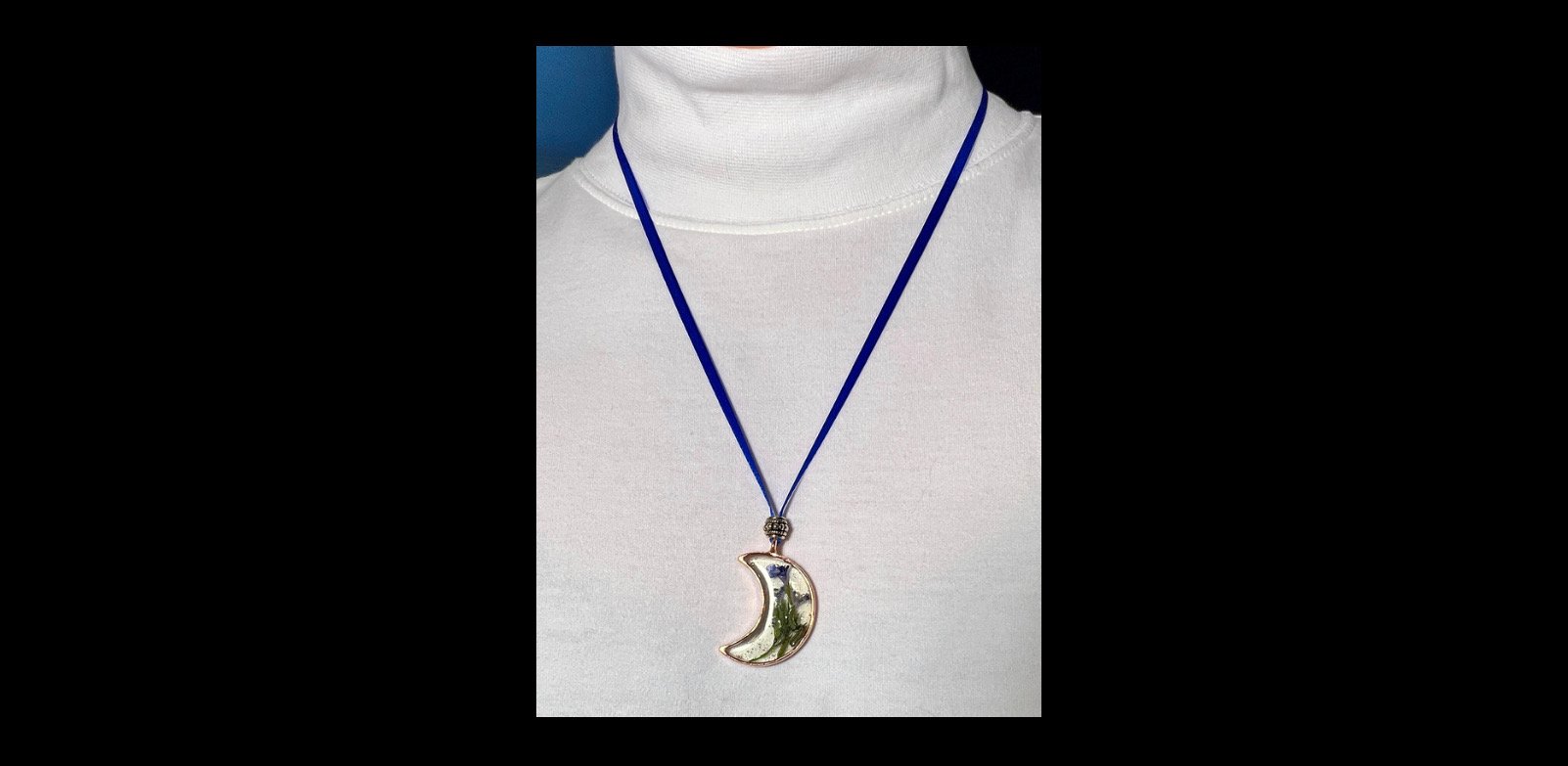 This charming "Catmint" rose gold colored pendant has been grown, dried, carefully hand-pressed, and immortalized in crystal clear resin with a little bit of sparkle, forever capturing its beauty. This unique piece of artwork can be displayed as an elegant necklace or a light-catching decoration piece. This pendant includes an eye-catching rose gold colored metal bezel, an engraved silver colored metal bead, a colorful royal blue 1/8" satin ribbon that hangs 11 inches, and is equipped with a rose gold colored lobster clasp.