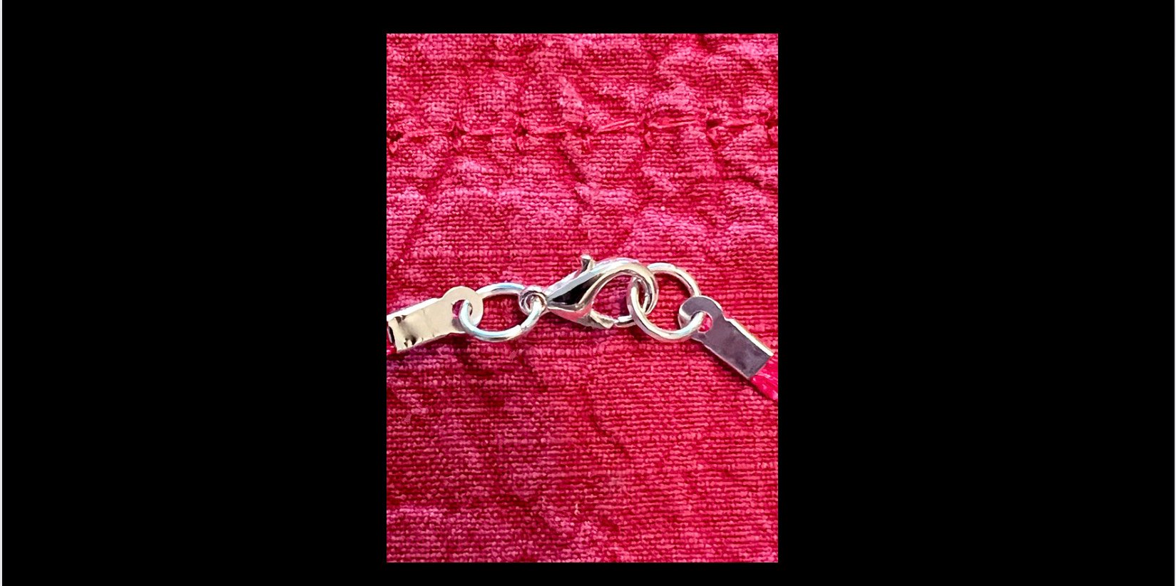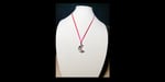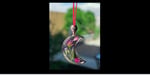This unique piece of artwork can be displayed as an elegant necklace or a light-catching decoration piece. This pendant includes an eye-catching silver-colored metal moon bezel, an engraved silver colored metal bead, a colorful hot pink 1/8" satin ribbon that hangs 11 inches, and is equipped with a silver colored lobster clasp.