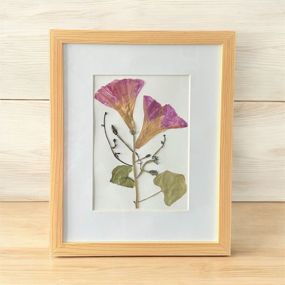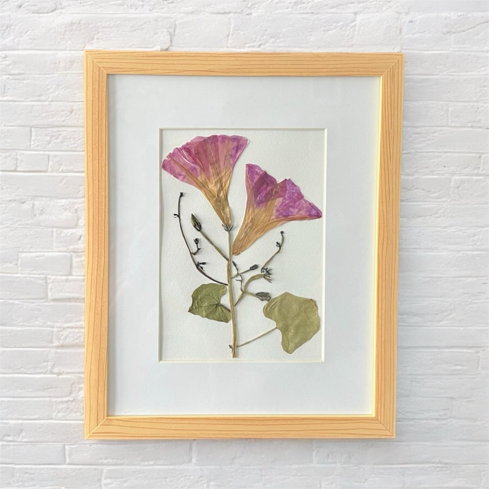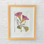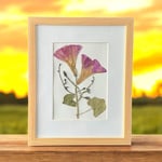 These beautiful Morning Glory wildflowers with vines were personally grown and harvested from my garden. They have been carefully hand-pressed, dried and framed in a 8" X 10" natural wood-look picture frame with glass. This unique piece of artwork forever captures the beauty of these wildflowers and will provide a gorgeous display for that perfect spot on a wall or desk within your home or office.