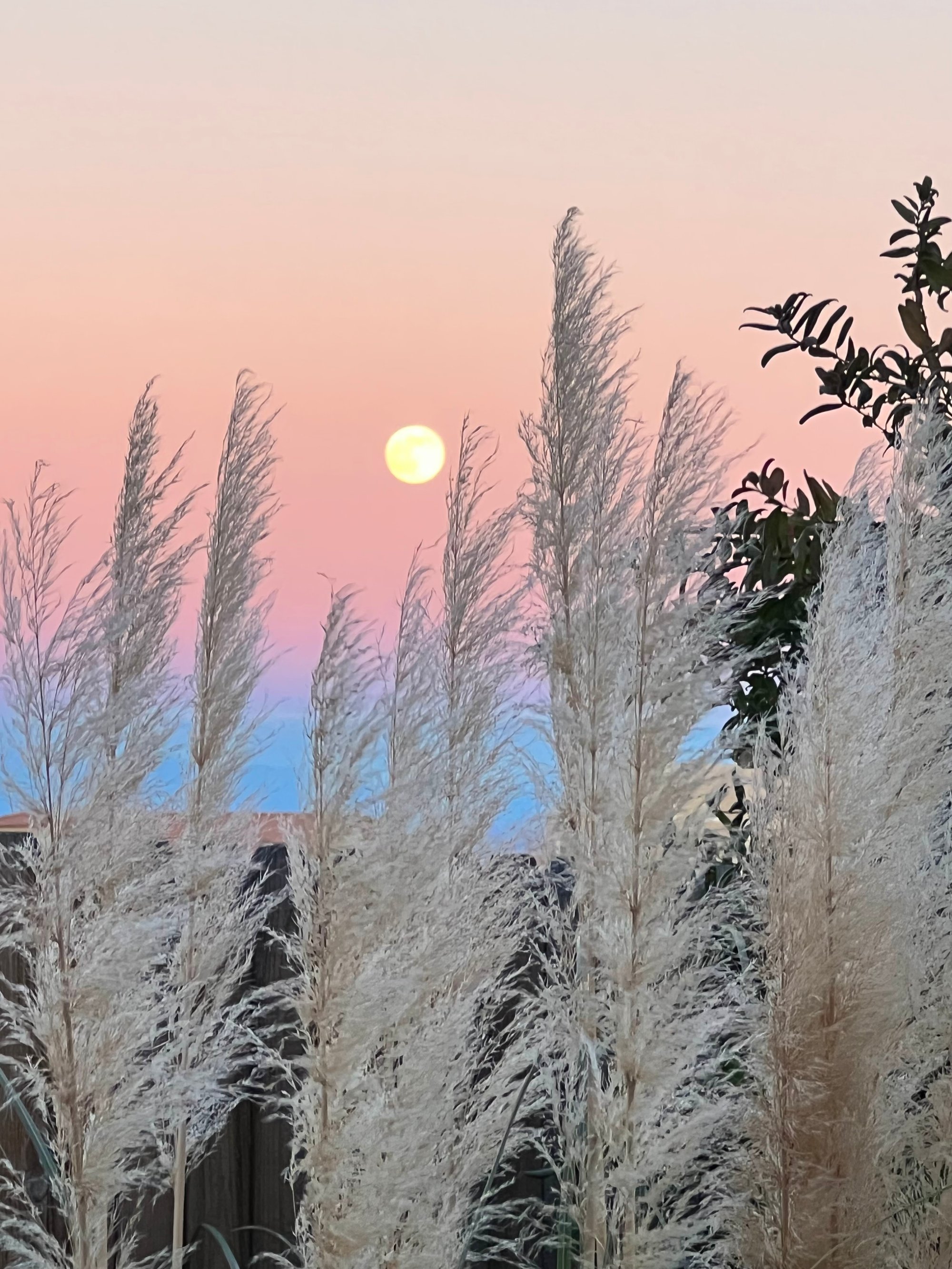 Get lost in creativity, joy, and contentment, alone or with others, while assembling this alluring jigsaw puzzle, which features the beautiful stillness of the December “Cold Moon” and my Pampas Grass plumes. This picture was taken the winter of 2025 in my garden.