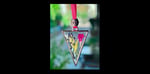 This unique piece of artwork can be displayed as an elegant necklace or a light-catching decoration piece. This pendant includes an eye-catching silver-colored metal triangle bezel, an engraved silver colored metal bead, a colorful hot pink 1/8" satin ribbon that hangs 11 inches, and is equipped with a silver colored lobster clasp.