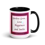 Add a pleasant splash of happiness to your morning coffee or tea ritual with this lovely mug! Lose yourself in tranquility while admiring my peaceful garden shed and garden during a beautiful New Mexico sunrise. This picture was taken the summer of 2025. On the other side become uplifted by my inspirational garden affirmation. This ceramic mug not only has a beautiful design, but it also has a colorful rim, handle, and interior.