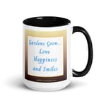Add a pleasant splash of happiness to your morning coffee or tea ritual with this lovely mug! Get lost in the peacefulness of my Cowpen Daisies being illuminated by the summer sunrise coming up over the beautiful Sandia Mountains. This picture was taken the summer of 2025. On the other side become uplifted by my inspirational garden affirmation. This ceramic mug not only has a beautiful design, but it also has a colorful rim, handle, and interior.