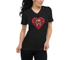Enjoy wearing this casual, comfy, and cute Cosmo Heart short sleeved, V-neck, t-shirt during the warmer months of spring and summer. This charming picture was taken the summer of 2024 in my garden and is embraced by a pleasant and uplifting garden statement.