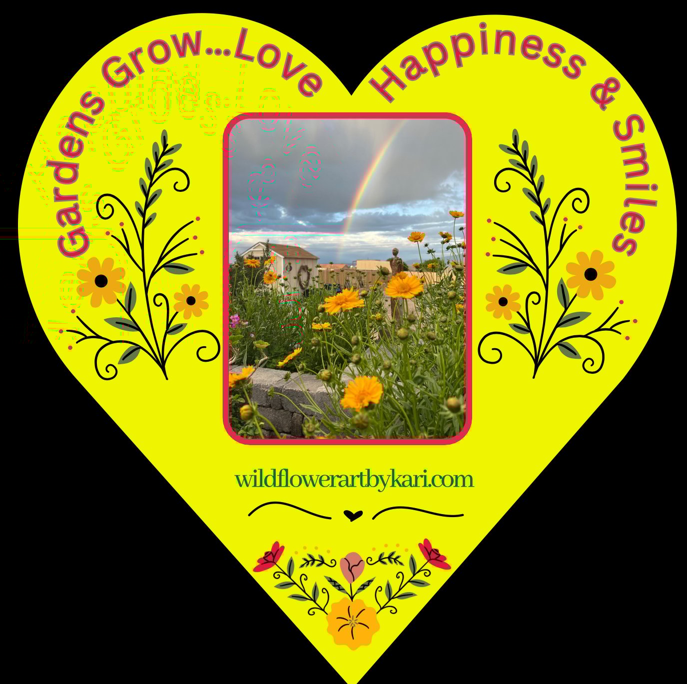 Rainbow Cottage Garden - Yellow Heart - White Ladies T-shirt