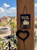 “Welcome Friends” Garden Shed - Painted Slate Rectangle (202302SL)