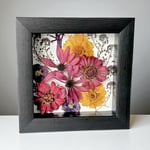 These beautiful Zinnias, Cone Flowers, Coreopsis, & Sweet Alyssum wildflowers were personally grown and harvested from my garden. They have been carefully hand-pressed, dried, and framed in a 6” X 6” classic black shadow box frame with glass. This unique piece of artwork forever captures the beauty of these wildflowers and will provide a gorgeous display for that perfect spot on a wall or desk within your home or office.